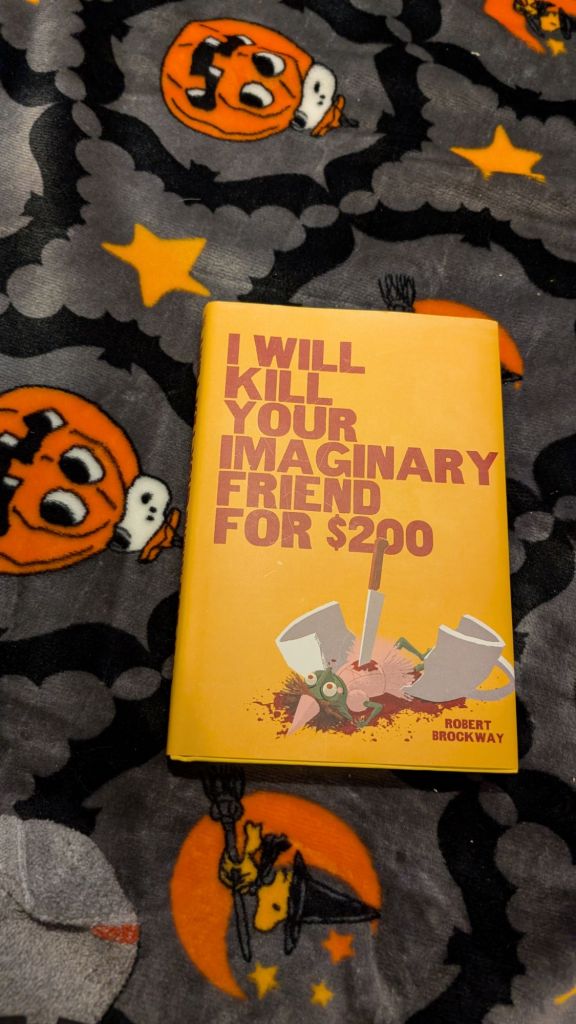 They say not to judge a book by its cover, but I was immediately reeled in by both the cover and the title of Robert Brockway’s novel I WILL KILL YOUR IMAGINARY FRIEND FOR $200. Does that make me easily susceptible to a clever name and concept? Probably. But I never claimed to be above that anyway.